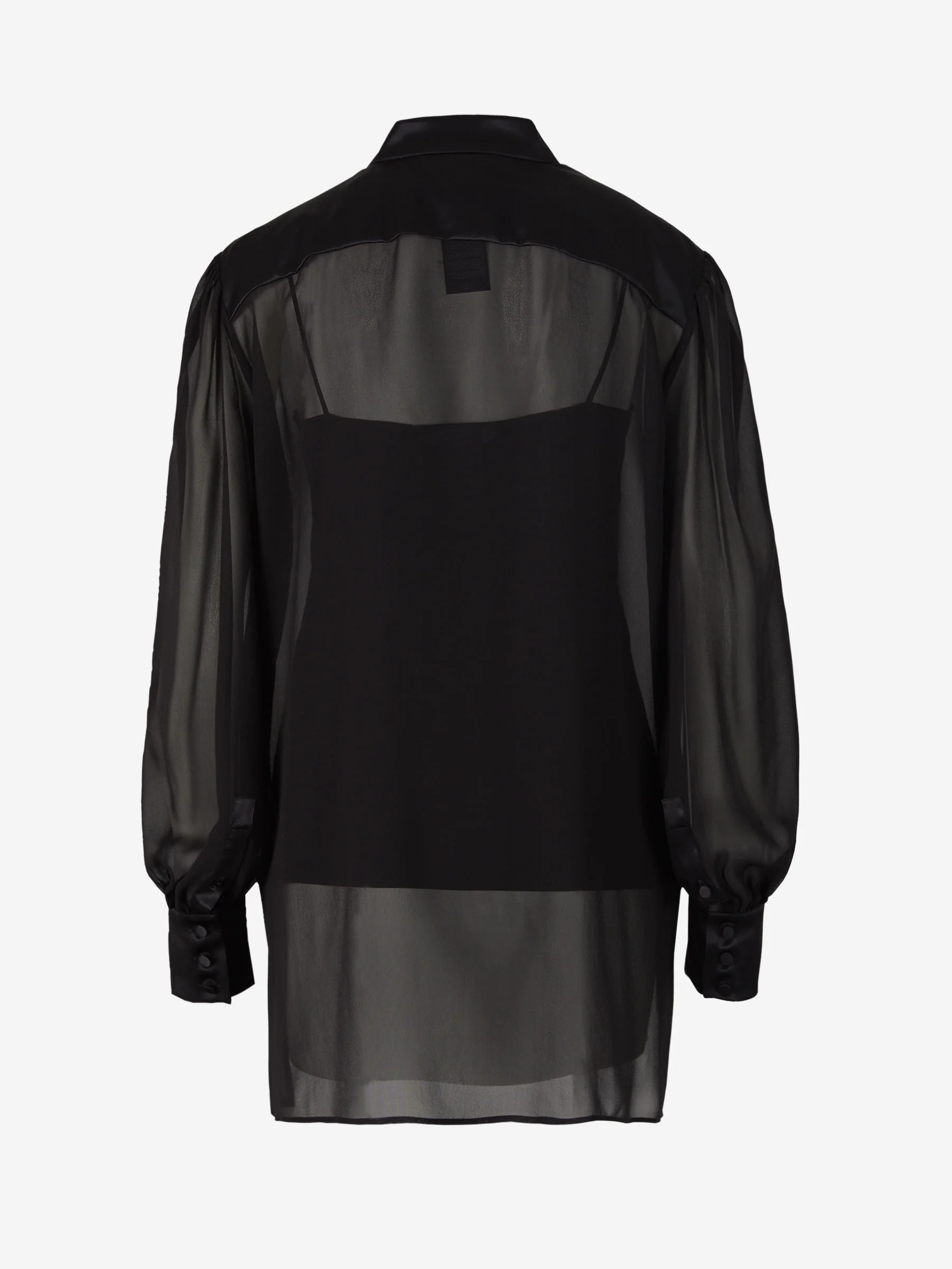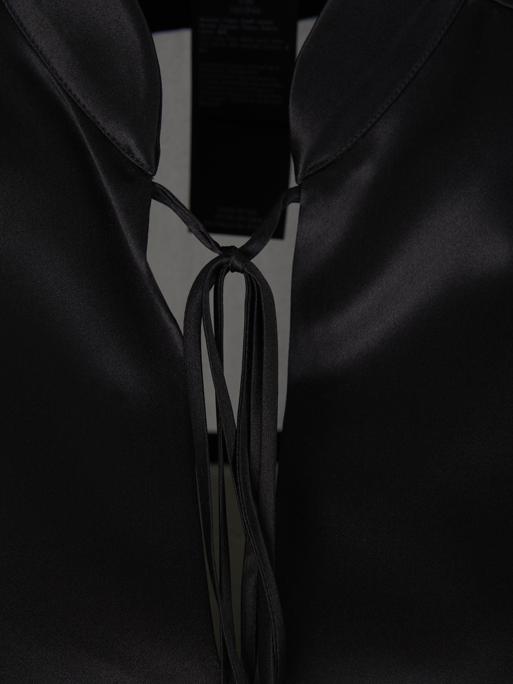 • Canesú, cuello y puños de satén