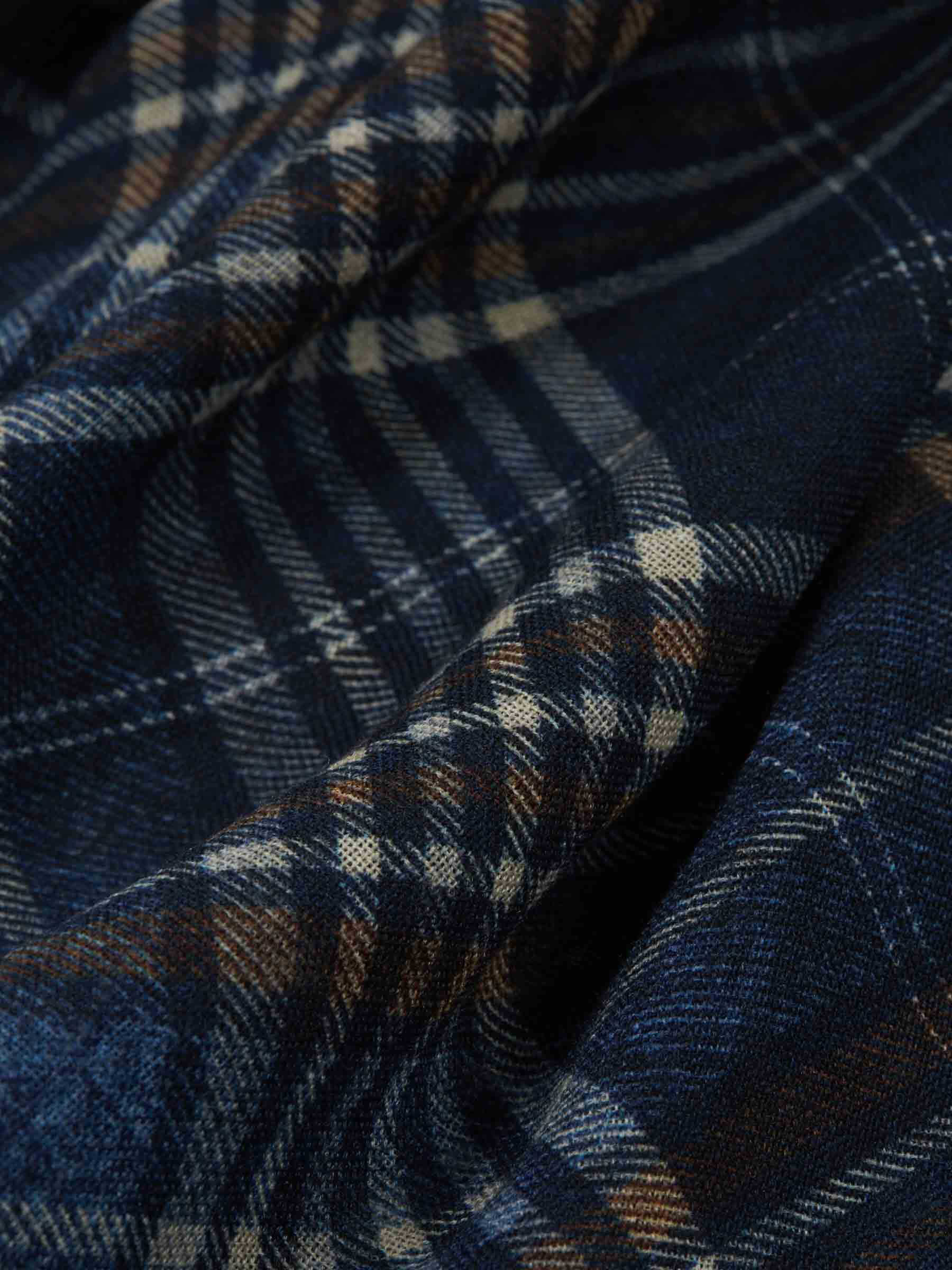 • Color azul, marrón y beige