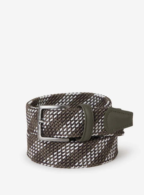 • Correa elástica trenzada con detalles en piel
