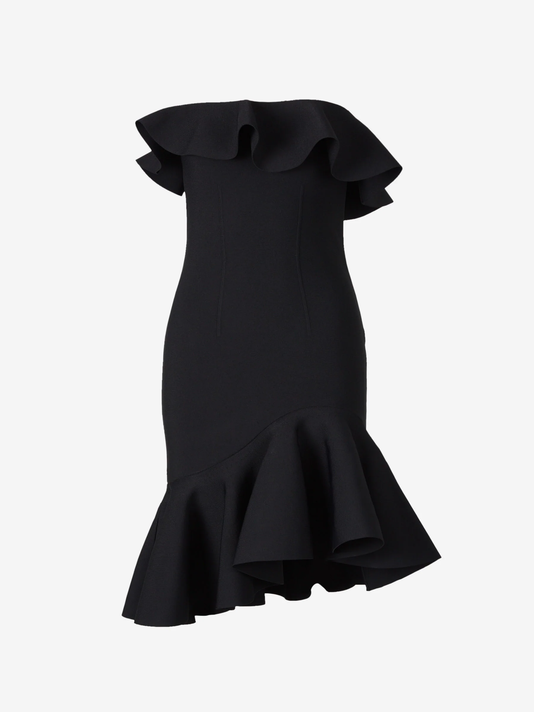 • Detalle de volantes asimétricos en el escote
